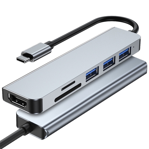 ฮับยูเอสบี6พอร์ตทำจากอลูมิเนียมอัลลอยด์6อิน1 3.0อะแดปเตอร์ Type C 3.0 USB HUB แบบมัลติฟังก์ชั่น6 in 1 USB C HUB