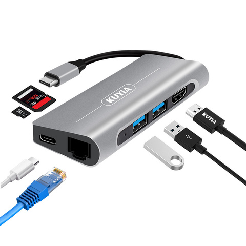 HUB Type C พร้อม HDMI RJ45 PD Charge USB C Hub Type-C Splitter อุปกรณ์เสริมสำหรับแล็ปท็อป Multi HUB